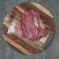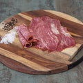 Onze Wagyu Pastrami is een unieke halal delicatesse, gemaakt van A4 Wagyu-rundvlees met BMS 8+ marmering. Het vlees wordt ambachtelijk gepekeld, gerookt en langzaam gegaard voor een ongelofelijke zachtheid, diepe rundsmaak en elegante kruiding. Elke plak smelt op de tong en brengt de luxe van Wagyu samen met de klassieke pastrami-beleving.